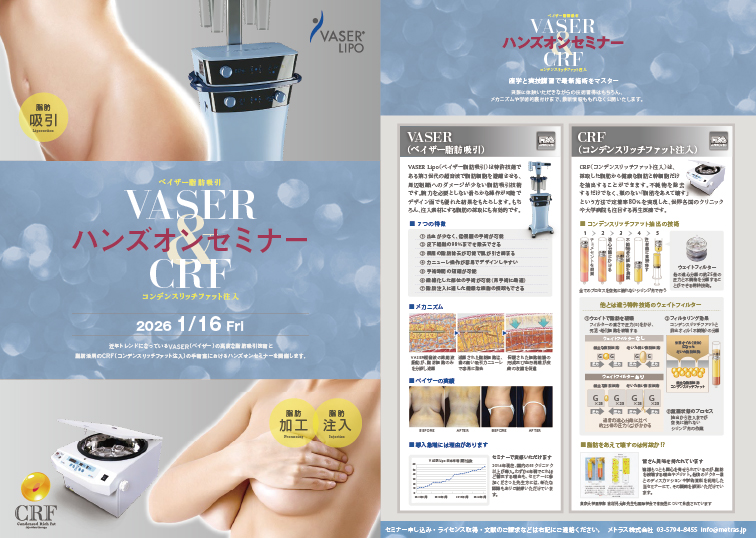 セミナーでは、ベイザー脂肪吸引のポテンシャルを最大限に引き出すコツ、コンデンスリッチ豊胸の定着率を高めるための注入技術など、施術の実践に即した技能を共有いたします。